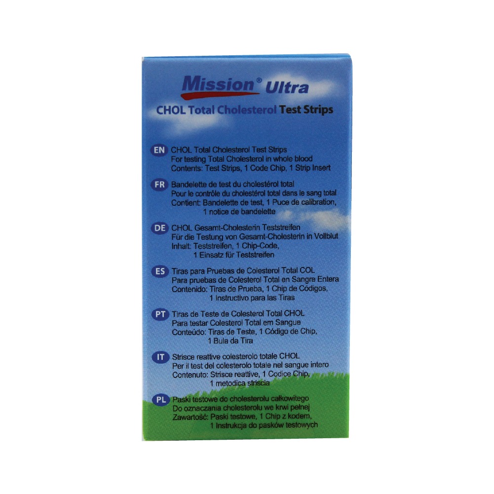 Mission Ultra Cholesterol Test Strips 25pcs inside use for testing total cholesterol in whole blood for self testing and professional use.