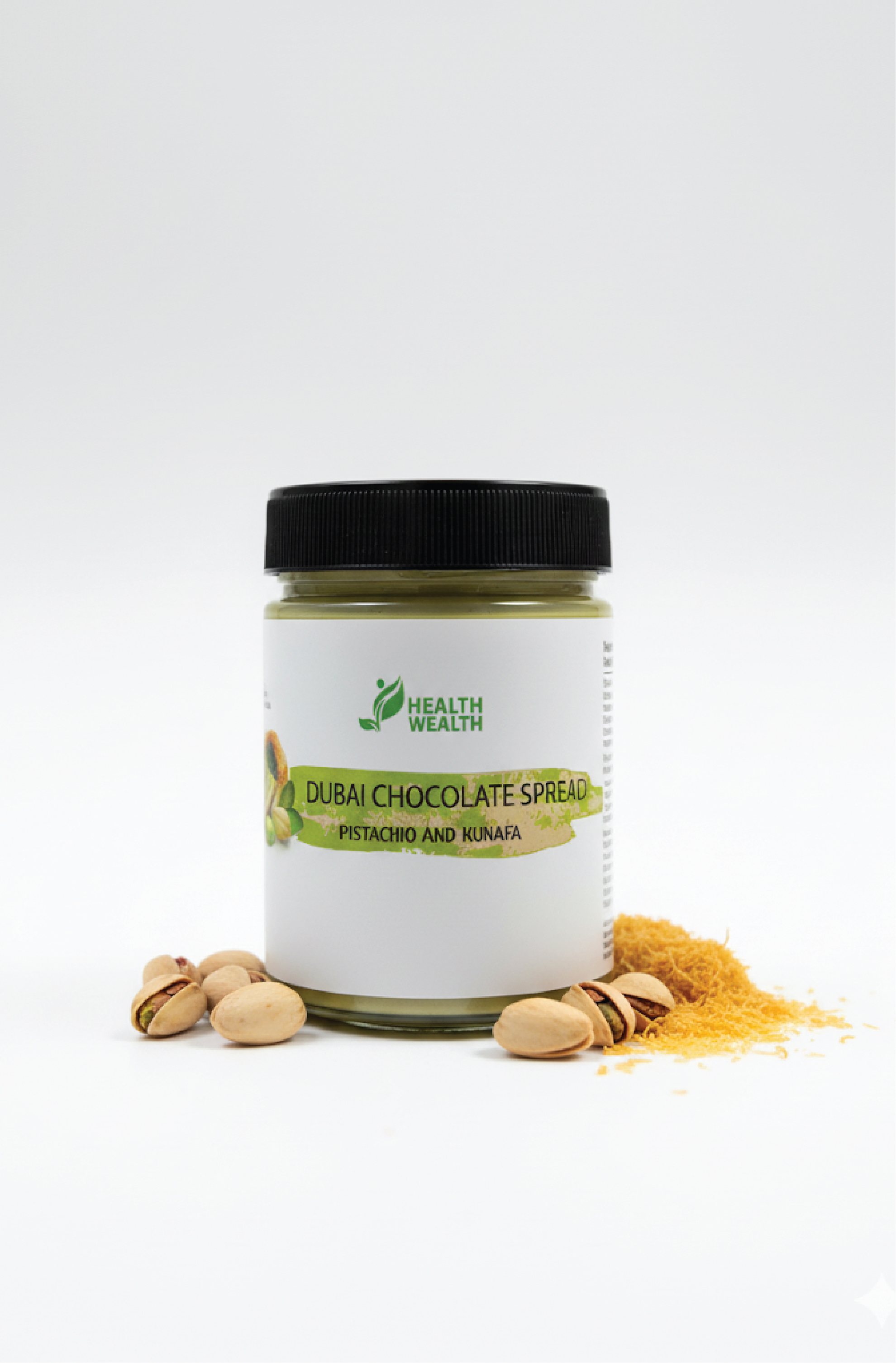 Indulge in guilt-free luxury with Dubai Chocolate Health Wealth Pistachio & Kunafa (220g – Sugar Free). Crafted with premium roasted pistachios and delicate strands of golden kunafa, this exquisite chocolate delivers a rich Middle Eastern flavor with a modern healthy twist.