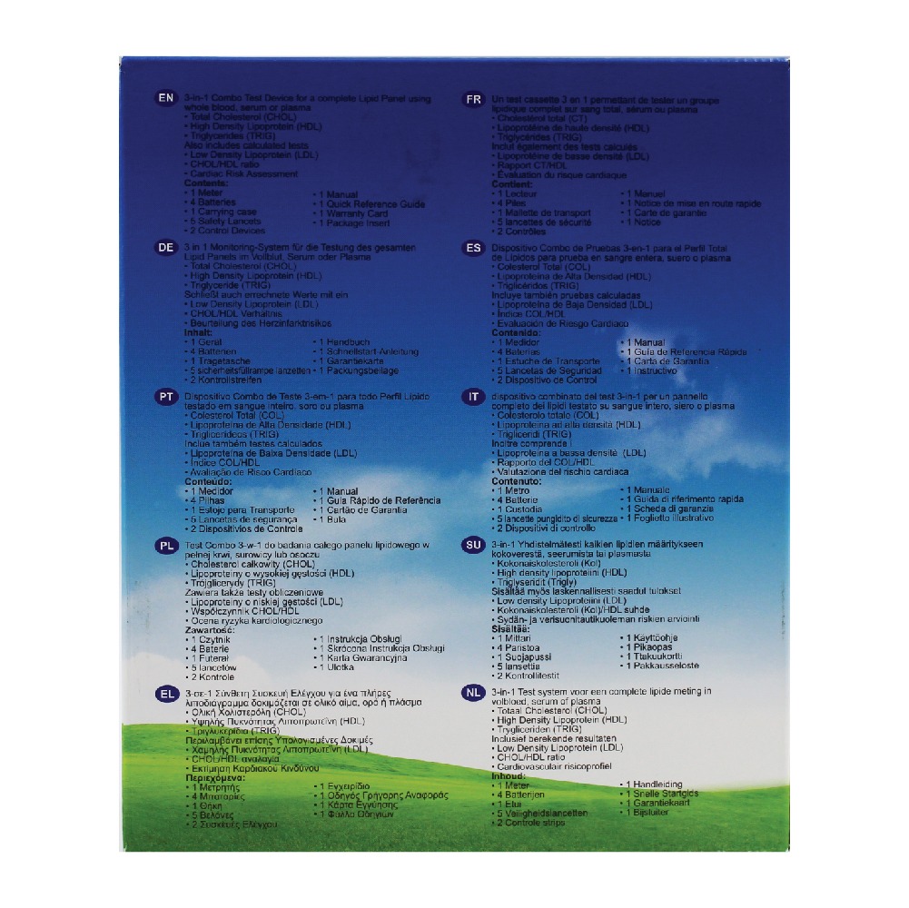 • Unique cholesterol meter to determine all fats (Total Cholesterol, HDL, Triglyceride, LDL and Ratio)